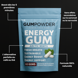 GUMPOWDER stimule naturellement votre vigilance, votre énergie mentale et votre concentration, grâce à une formule à base de caféine naturelle, vitamine B6 et vitamine B12.